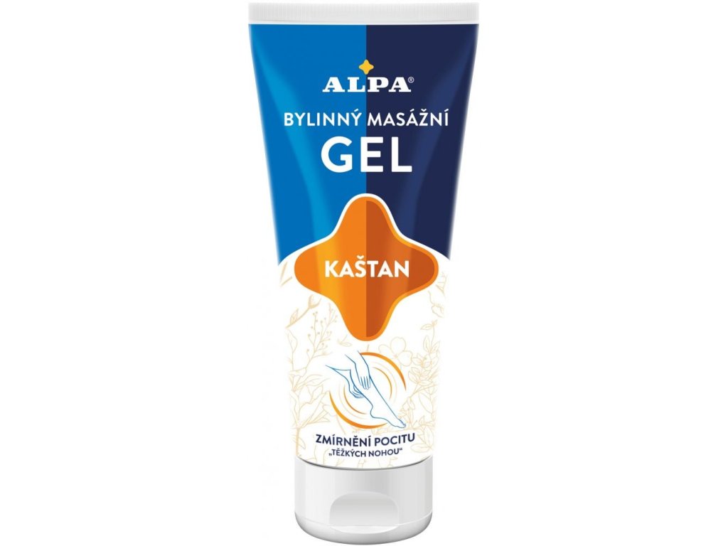 Alpa Kaštan masážní gel je určen k ošetření nohou unavených po celodenním stání, k omezení pocitu "těžkých nohou". Účinné látky v kaštanovém extraktu a rozmarýnová silice mají uklidňující a osvěžující účinky, příznivě působí na cévní systém, především na žíly.