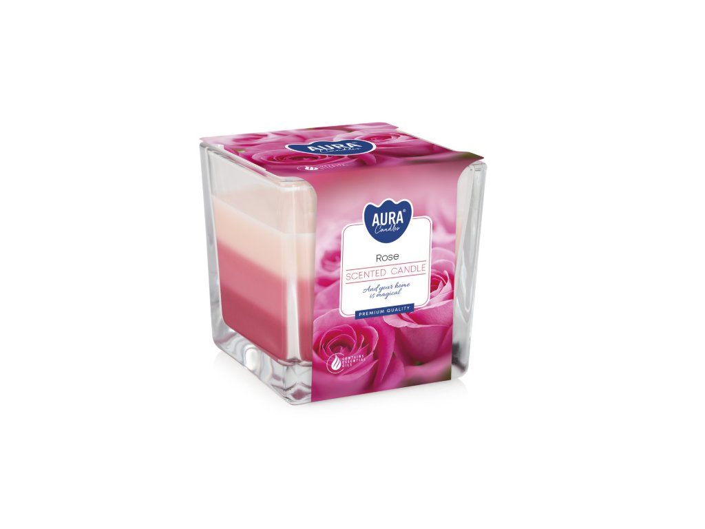 Bispol Tříbarevná svíčka ve skle Rose 170g
