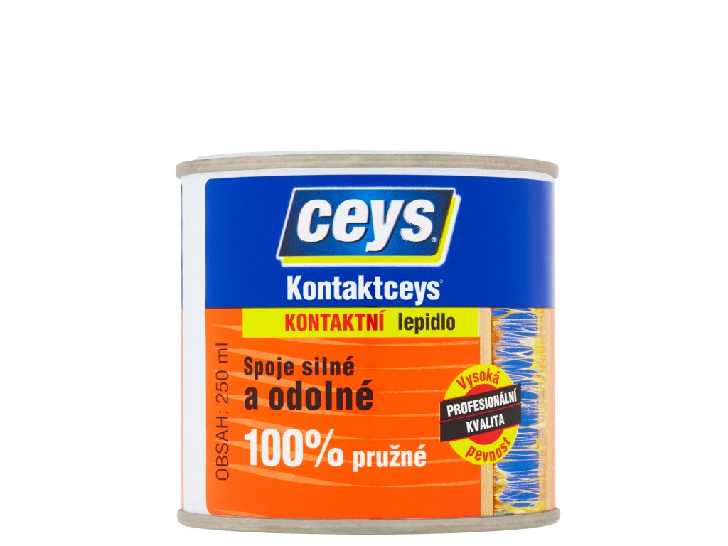 Ceys KONTAKTCEYS 500 ml je robustní plechovkové balení univerzálního pružného kontaktního chloroprenového lepidla na bázi neoprenu. Vytváří extrémně pevné, pružné a trvalé spoje s odolností až 80 kg/cm², vhodné pro kombinované lepení různých materiálů. Odolává vlhkosti, teplotám až +110 °C a je ideální pro náročné aplikace v dílně, průmyslu nebo řemeslech. Balení obsahuje praktický aplikační štětec pro rovnoměrné nanášení.